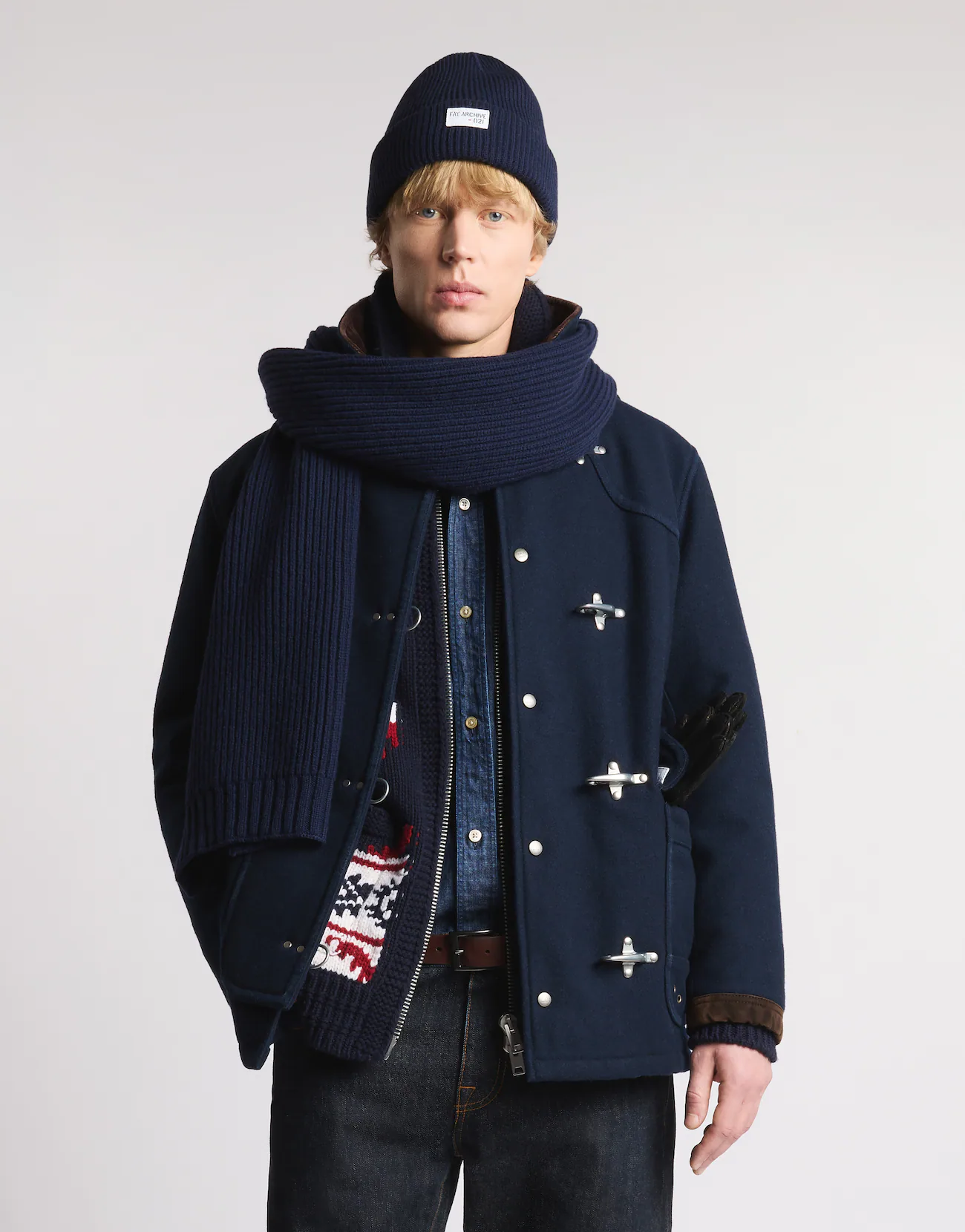 L’iconique 4 Ganci évolue constamment sans perdre l'ADN workwear qui en fait un culte depuis les années 1980. Inspiré des uniformes des pompiers américains, il se distingue par la fameuse fermeture avec crochets en métal, des détails en croûte de cuir et un petit col en velours.