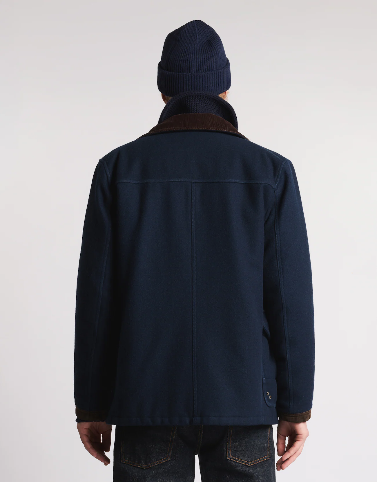 Cette version réalisée en drap de laine mélangé effet délavé, possède un rembourrage en ouate et une doublure matelassée avec motif oignon.