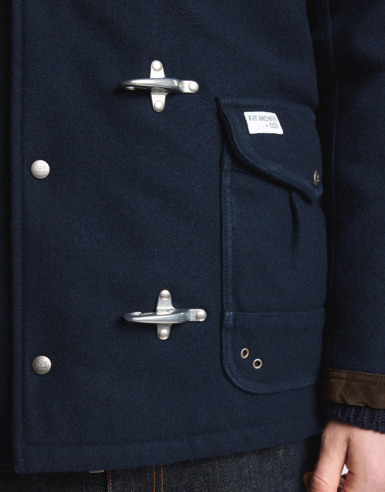 Dotée de maxi poches avec rabat et pressions et d'une petite poche interne, elle a une double fermeture avec pressions cachés. Le modèle est complété par l'étiquette Fay Archive cousue sur la poche gauche.