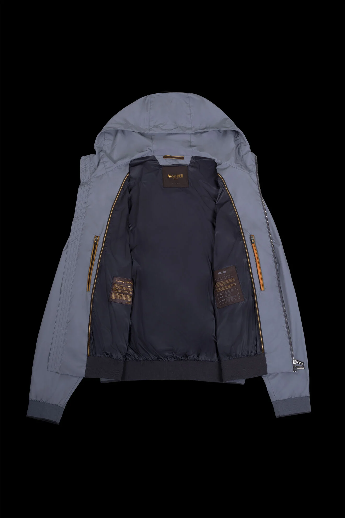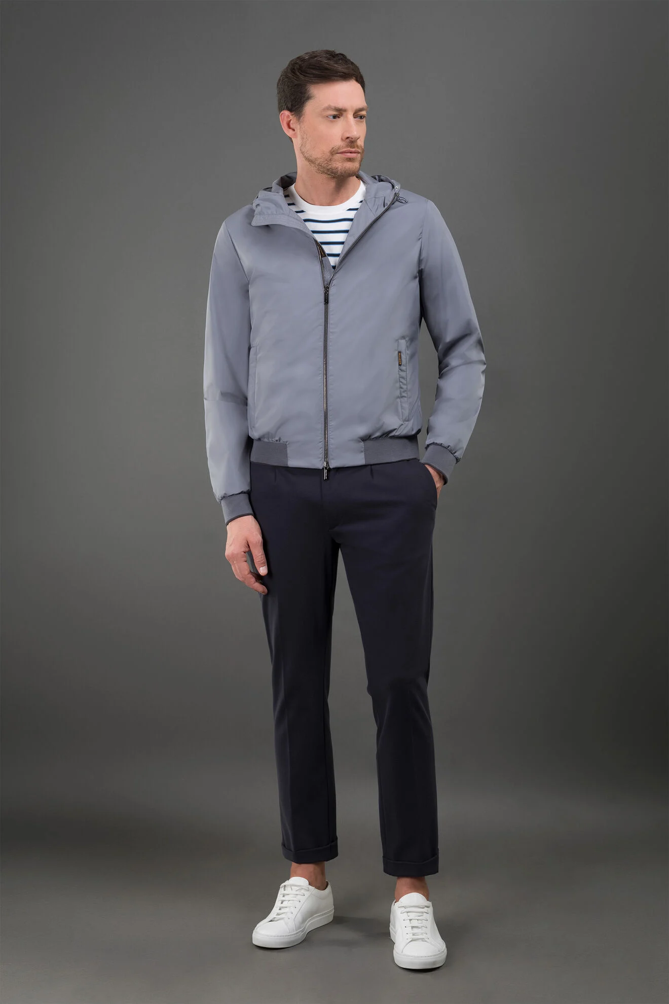 Veste légère de la ligne Acqua (2 parapluies) en tissu technique déperlant de haute qualité, au toucher doux et à la finition mate élégante.