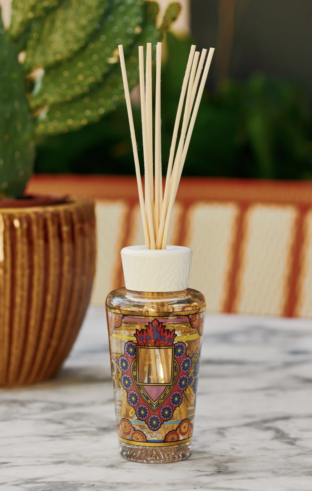 Son parfum gourmand de cassis, de freesia et de cèdre est un hommage a une terre latine riche en couleurs.