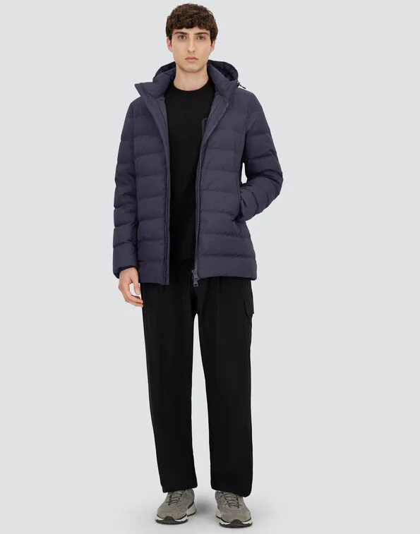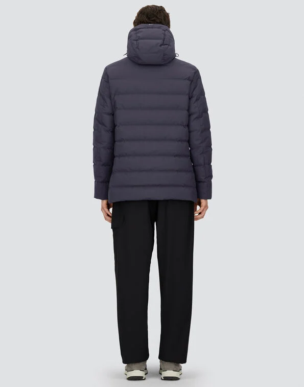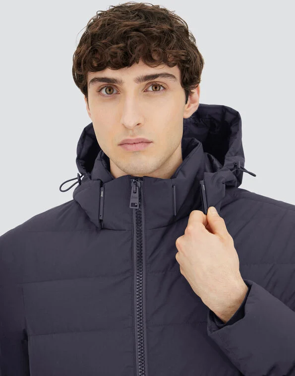 Veste longue en microfibre de polyester doublée d’une membrane performante, gage de respirabilité et d’imperméabilité jusqu’à 20 000 Schmerber.