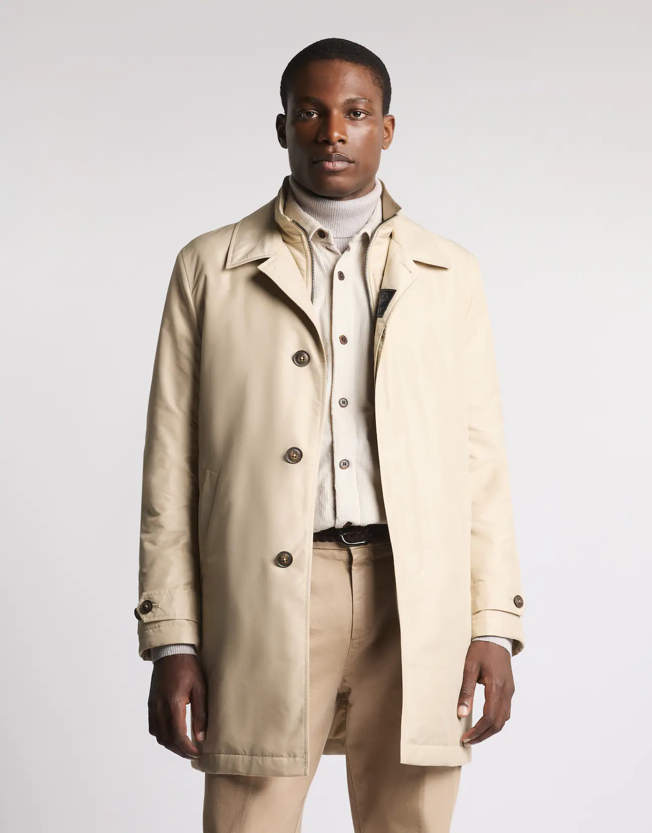 Interprète contemporain de la logique de l'habillement day to day, le Morning Coat est l'imperméable iconique avec construction double front à l'élégance désinvolte et polyvalente.