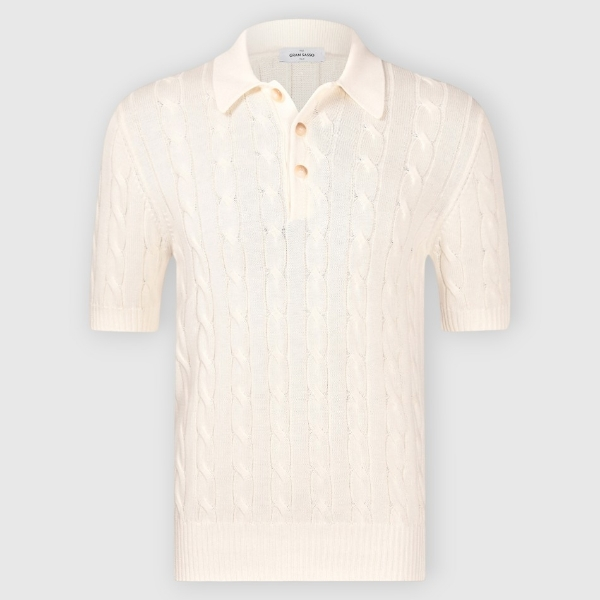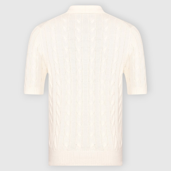 Polo tricoté à manches courtes à deux chevaux en coton égyptien pur, avec des détails en tricot torsadé et côtelées. Ajustement régulier. Fabriqué en Italie.