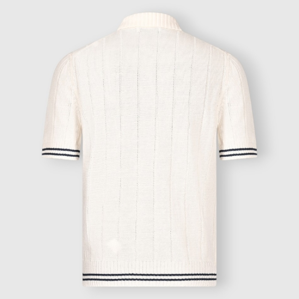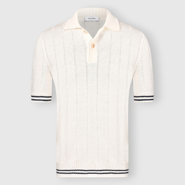 Polo tricoté à manches courtes, côtes, en lin et coton. Des détails de couleur contrastés sur les bords et l’ourlet des manches ajoutent un attrait distinctif d’inspiration britannique. Une pièce polyvalente, également adaptée à une veste tricotée pour un look street. Ajustement régulier. Fabriqué en Italie.