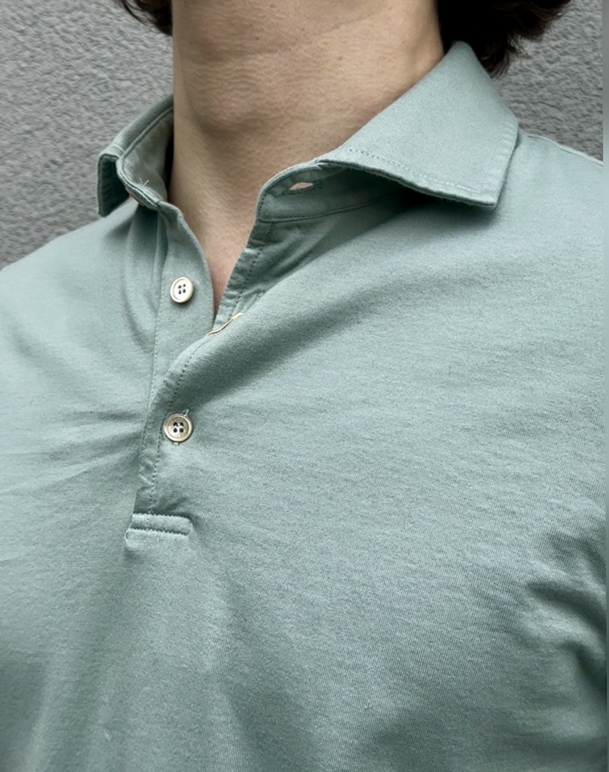 Provenant directement de la vallée du Nil, le coton Giza utilisé par FEDELI est naturellement biologique. Il se présente sous la forme d'un polo emblématique. Boutons en nacre. Teinté dans la masse.