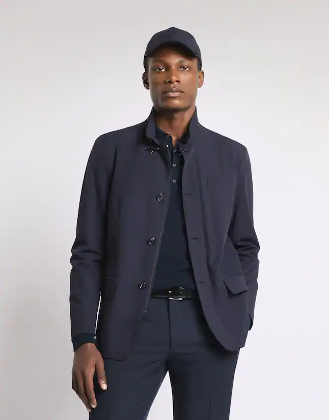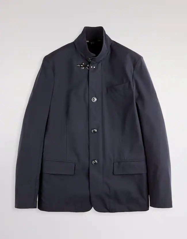 Dotée d'une fermeture avec zip, boutons apparents et crochet iconique Fay à hauteur du col, elle possède des poches à passepoil avec rabat, une petite poche sur la poitrine et une poche interne.